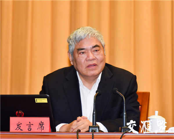 南京大学原党委书记洪银兴作辅导报告。交汇点记者肖勇摄